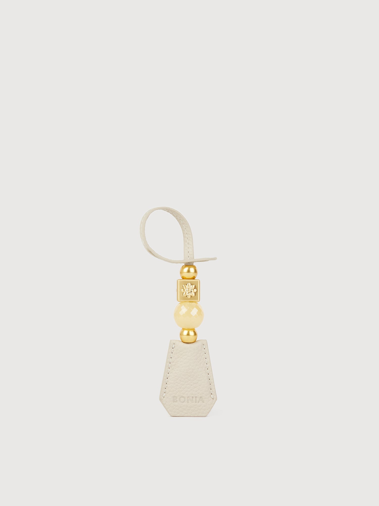 The Bruna Charm is crafted from faux leather, exuding geometric simplicity. Available in three colorways, its neutral elegance makes it a pairing for a touch of luxury.