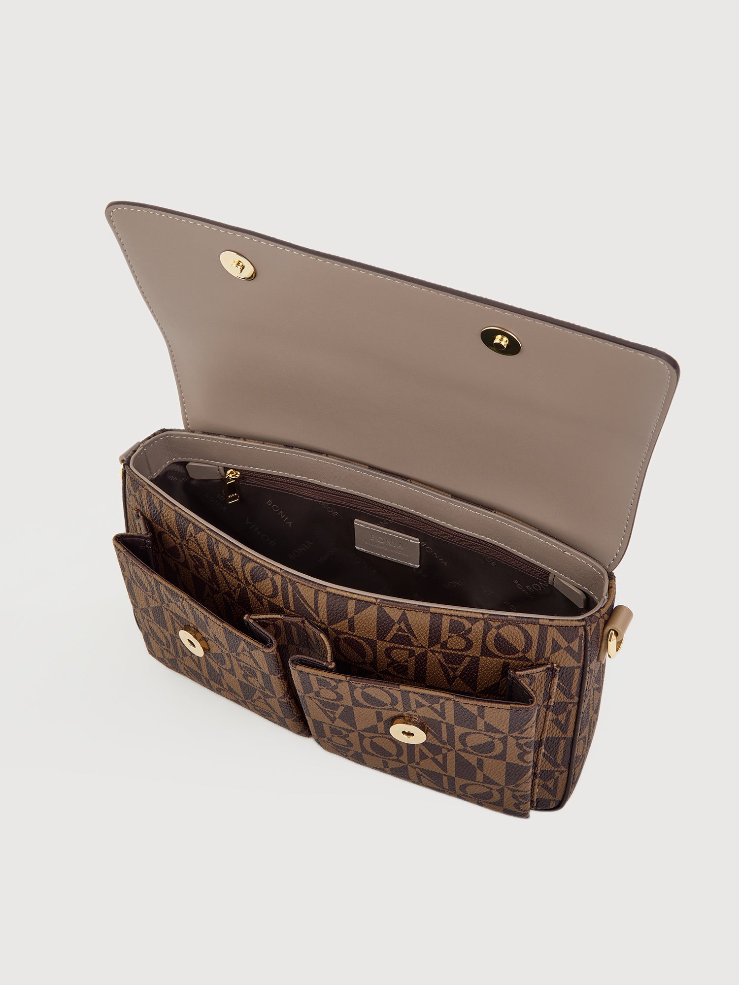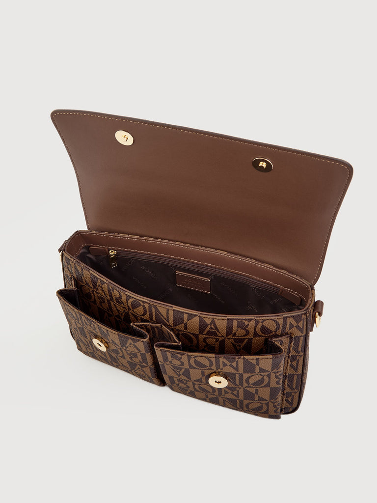 The Eterna Monogram Shoulder Bag offers the convenience of everyday chic. Designed with two extra compartments, its functional excellence makes it a go-to choice for chic events and errand days.