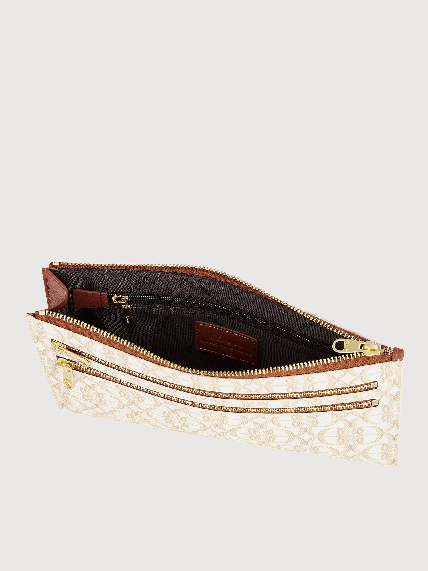 The La Luna Monogram Pouch embodies feminine sophistication in every way. Embellished with bronze accessories, it features multiple external compartments for optimal organisation and easy access to your valuables — this beauty has the whole package.
