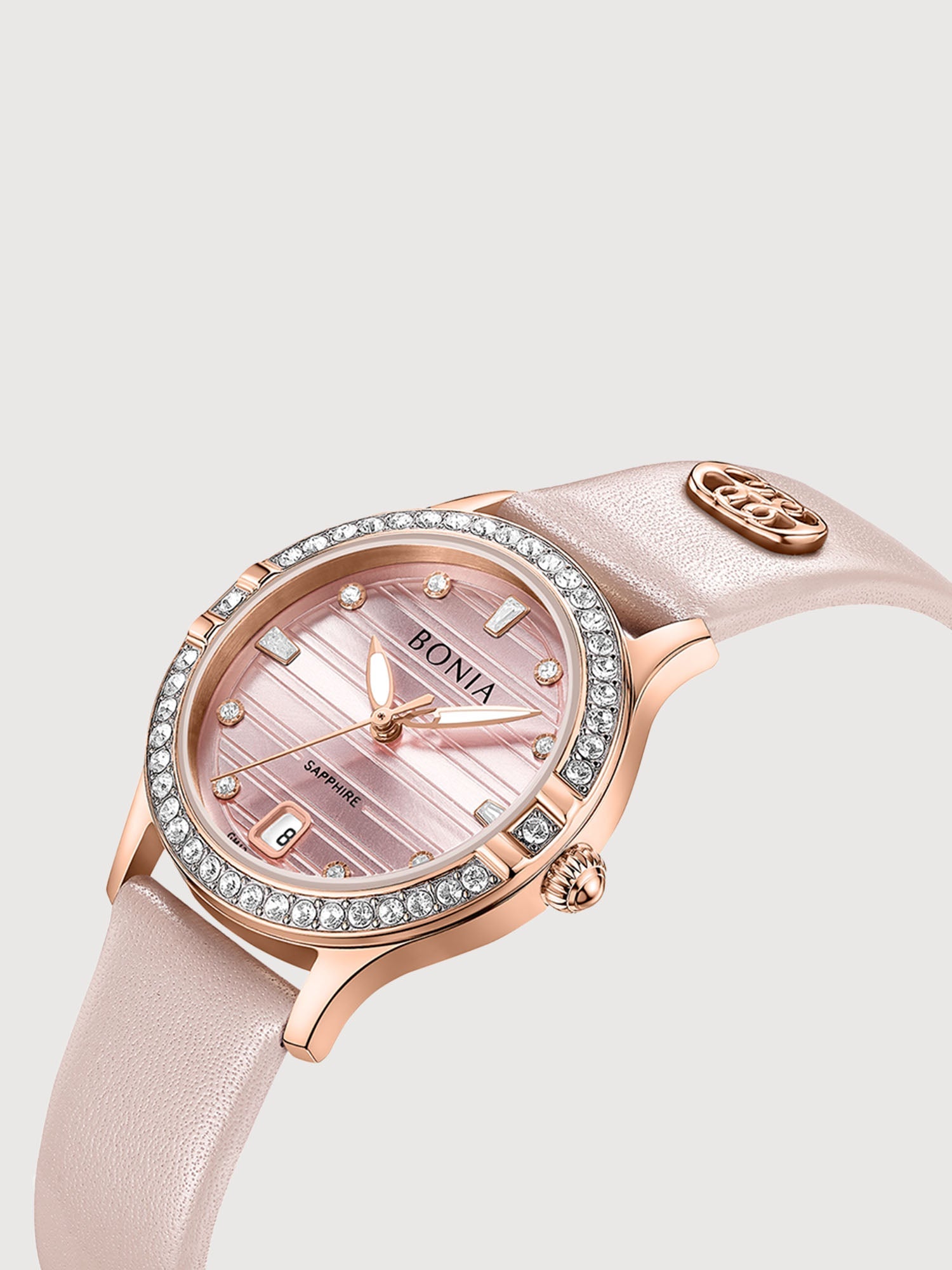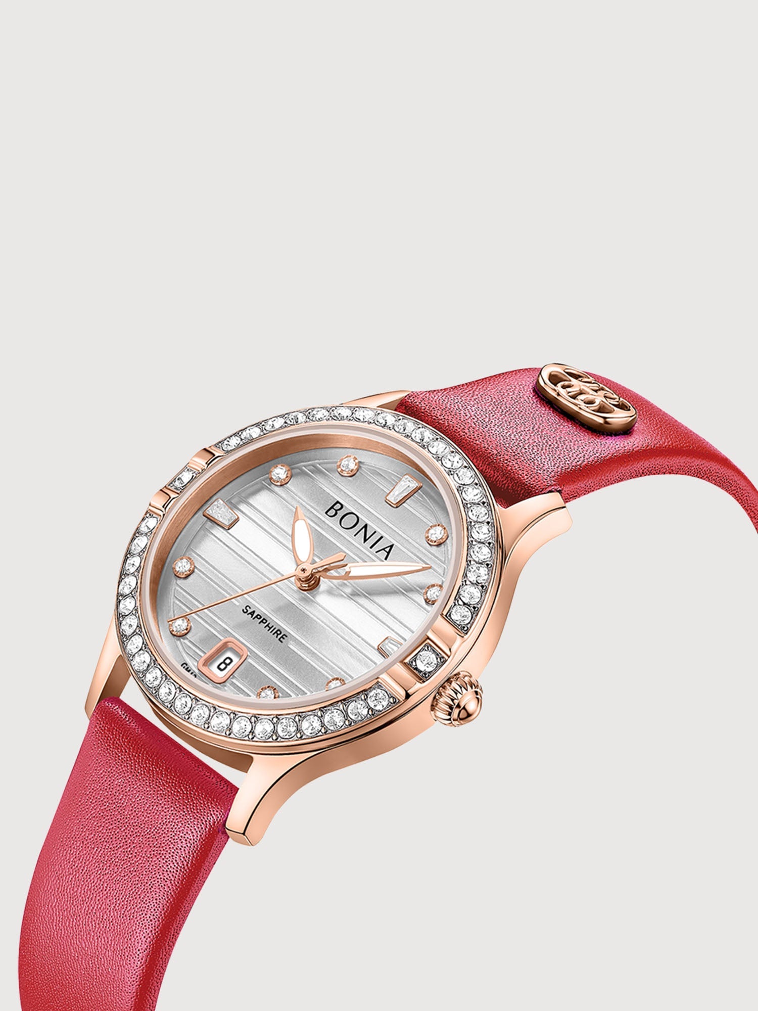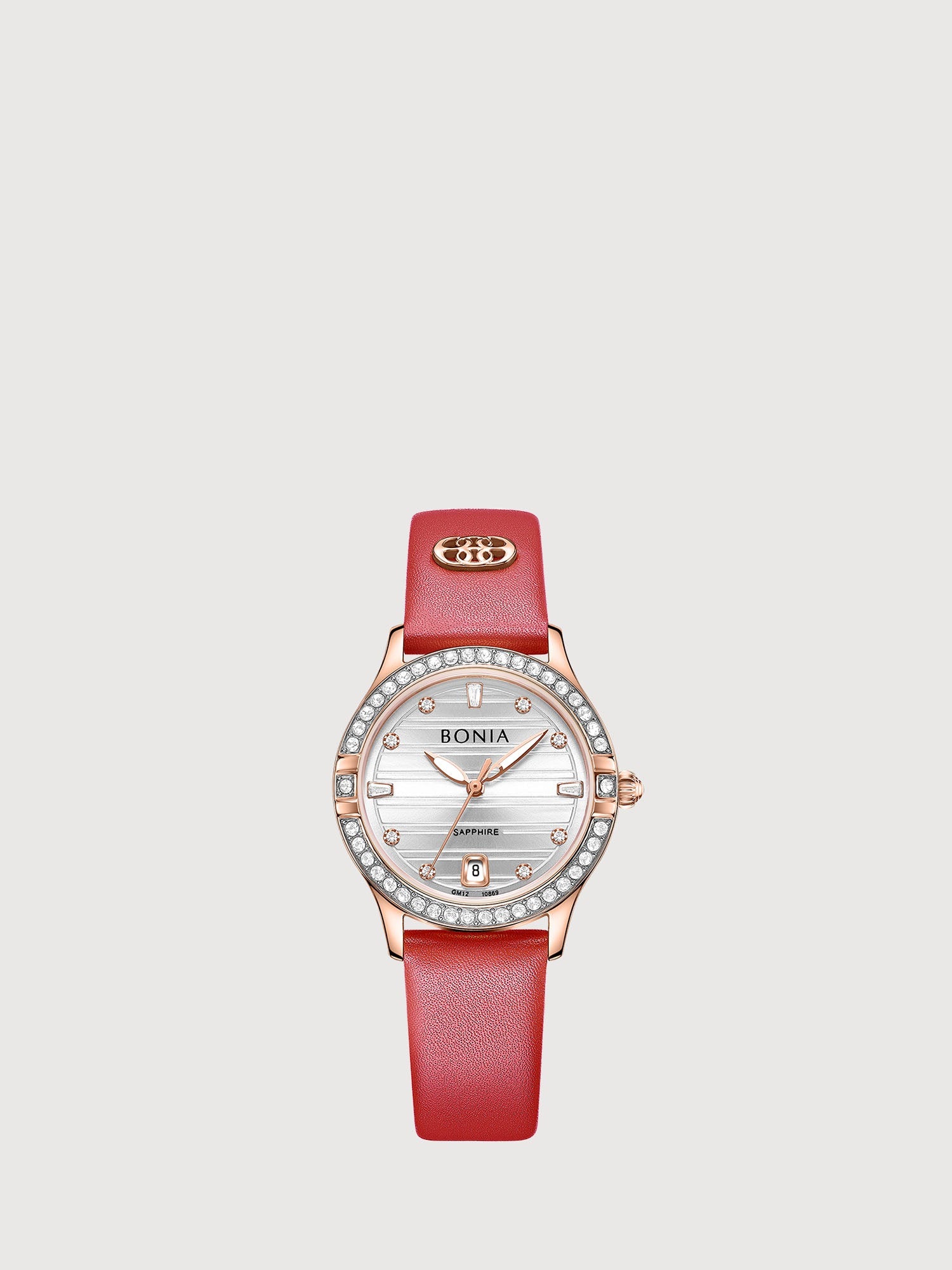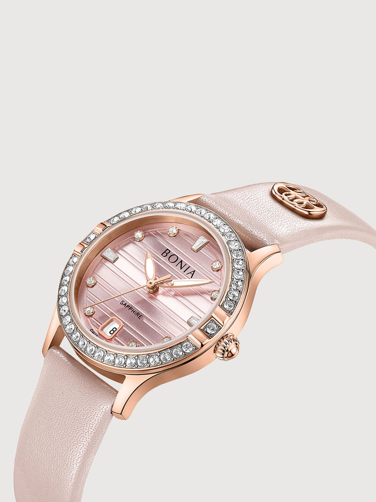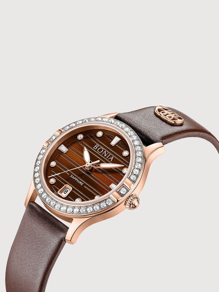 The Augusta Stainless Steel Women's Watch showcases the iconic La Luna monogram in exquisite colours. Designed to make an impression, its leather and sapphires are the finishing touch to every affair.
