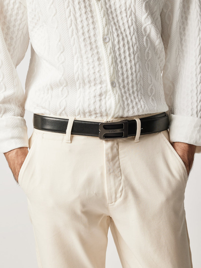 Beno Non-Reversible Leather Belt with Gunmetal Auto Lock Buckle