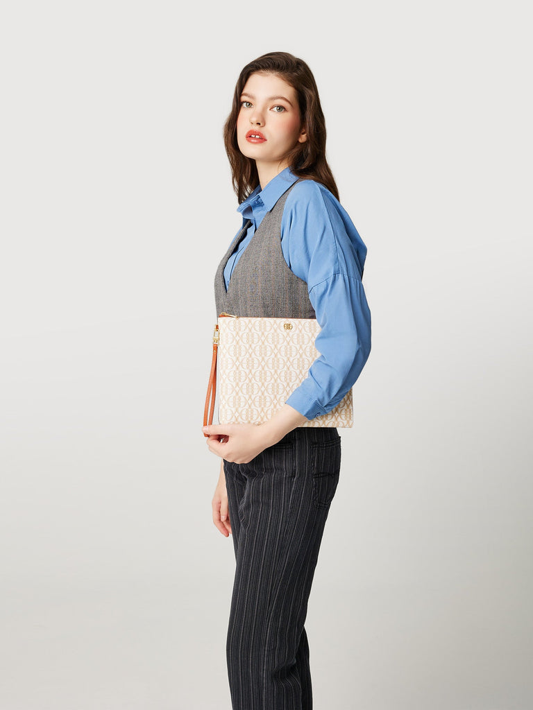 The La Luna Monogram Clutch offers urban flair and functionality in a sleek one-piece. Every piece comes with a detachable wristlet strap doubling up its purpose, fitting cards and notes with ease. Designed for mid-day elegance.