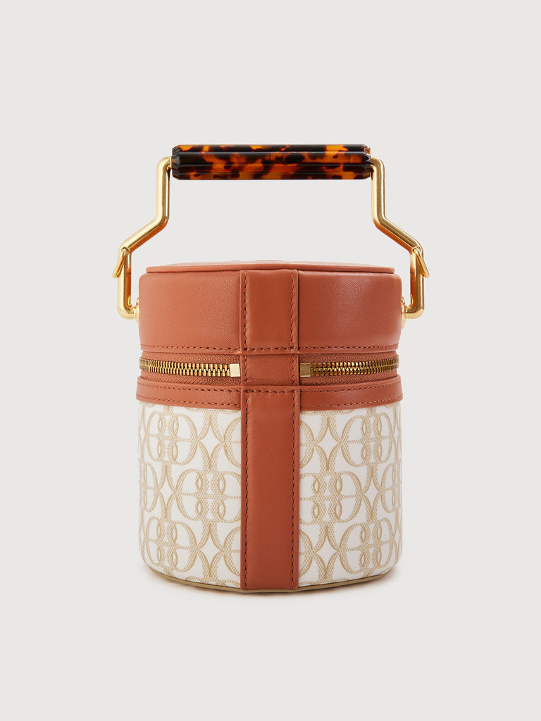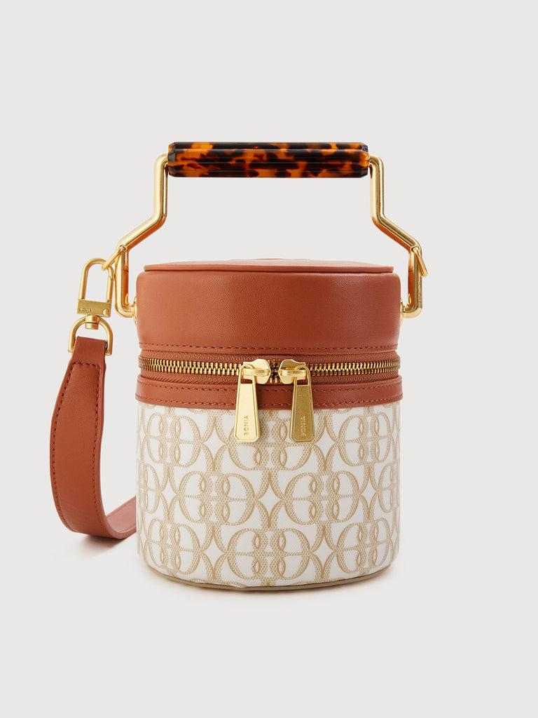 Chic sophistication — the La Luna Monogram Mini Bucket Bag offers a classy yet modern take on contemporary form and function. Paired with bronze accessories, sling or carry this masterpiece to match your unique look.