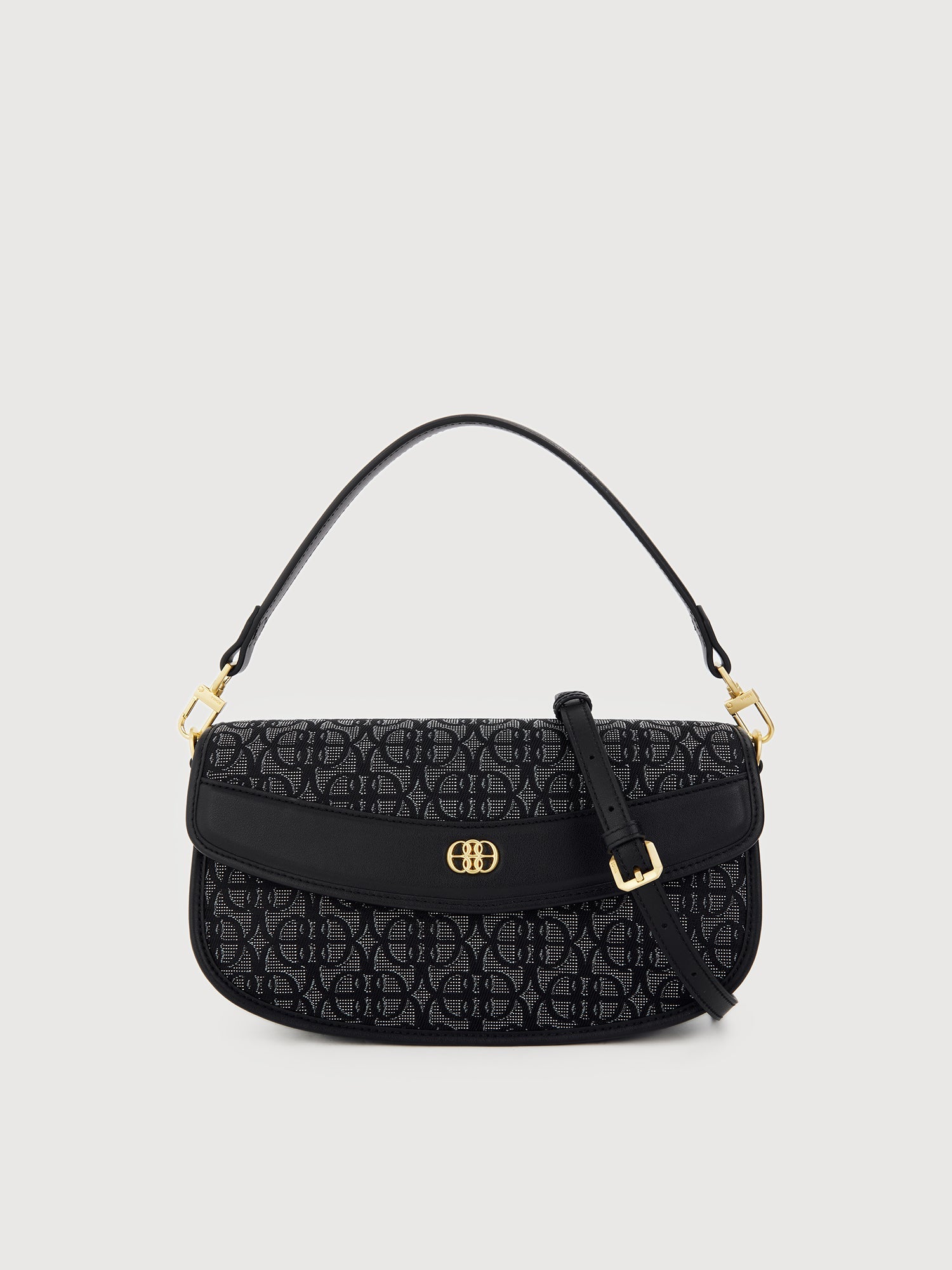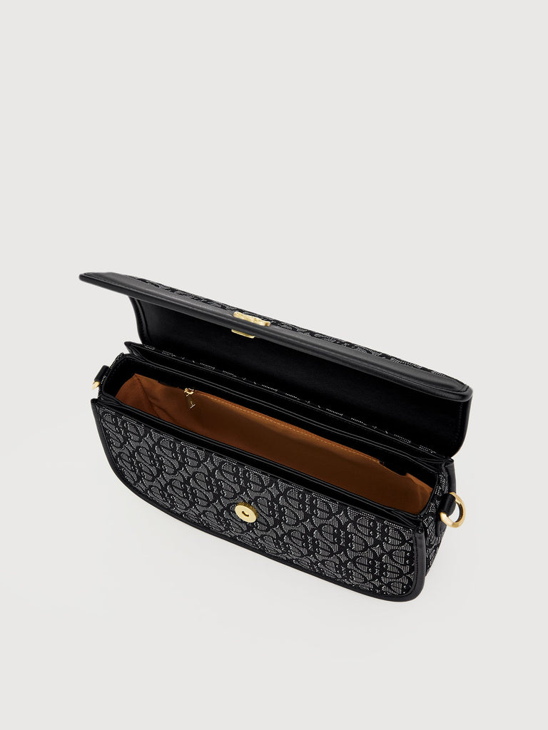 The Nuccia Monogram Shoulder Bag keeps everyday essentials in place while keeping up with the everyday aesthetic. Designed with Jacquard Trimmed Nappa Leather, it is the fashionable staple for weekends and travels.